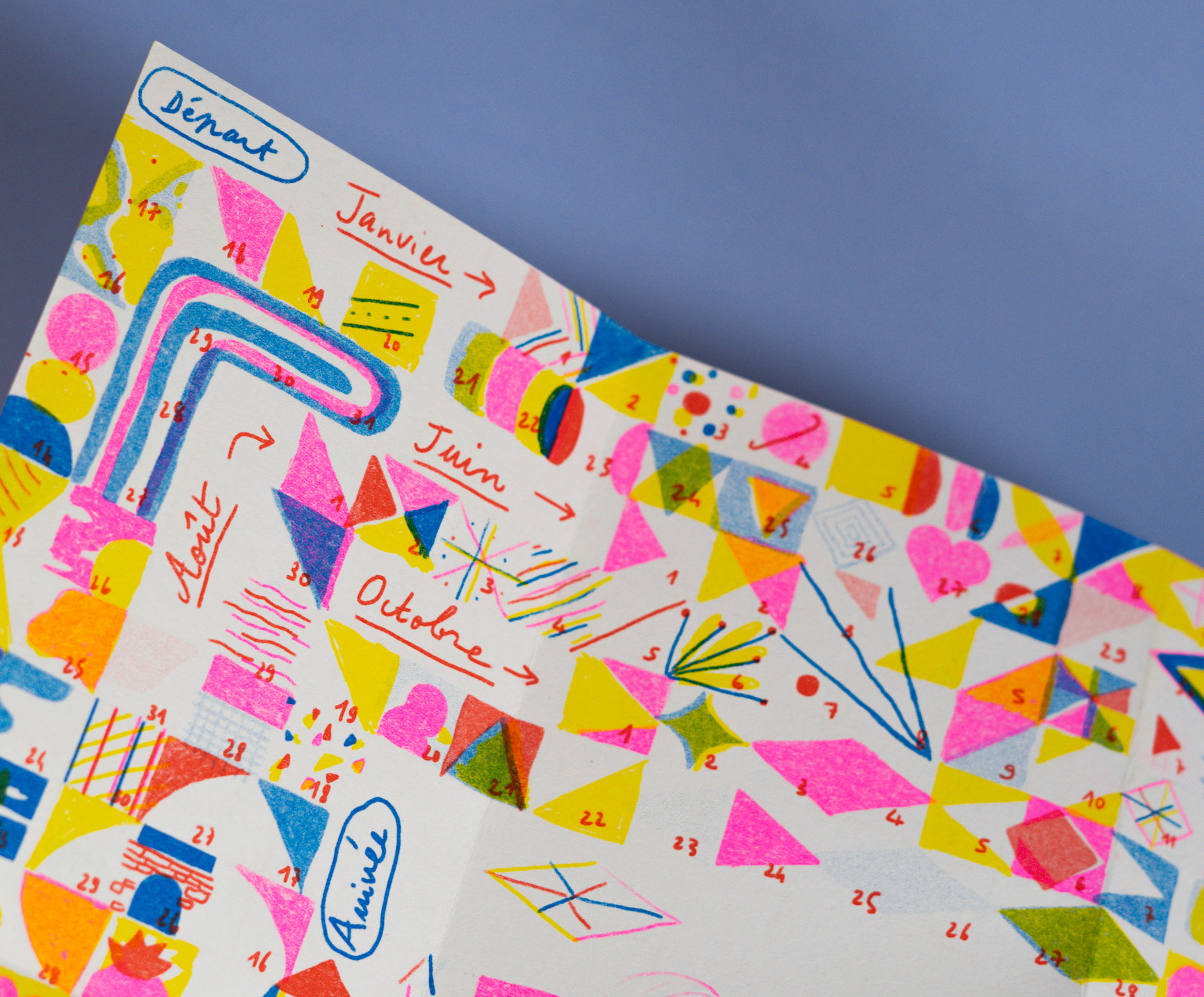 Risographie 4 couleurs sous forme de jeu de l’oie.